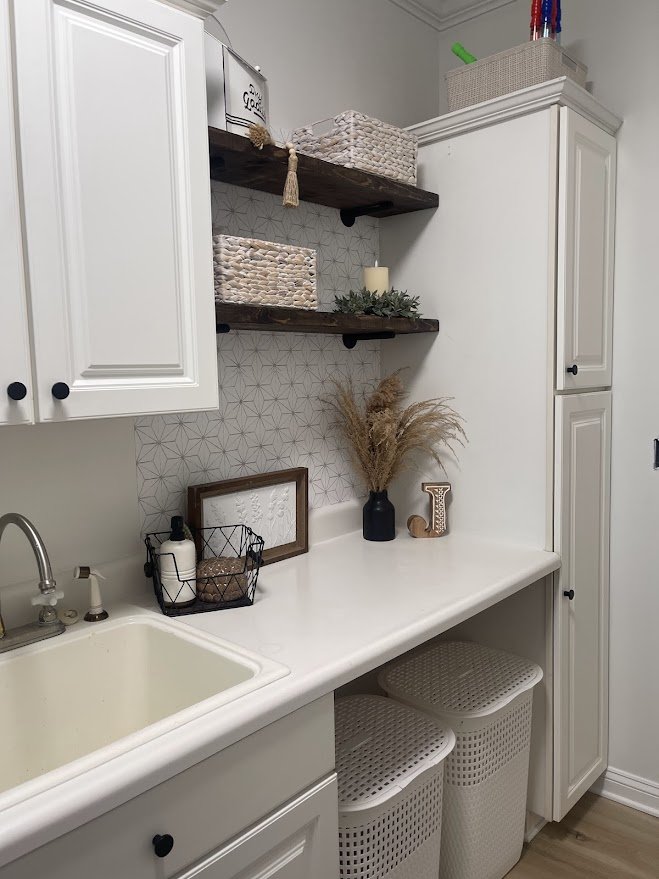 For this project, we took a laundry room in need of some organization and interior design elements, and turned it into a comfortable and function space.