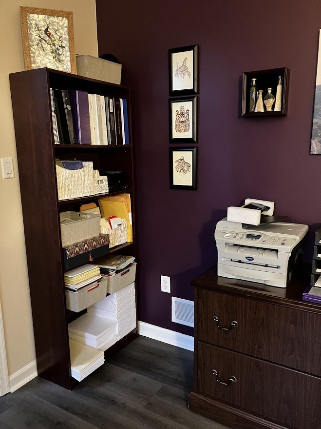 This project was all about creating a more inviting work space, where items have a place and are easily accessible for someone with a number of important roles on a daily basis.