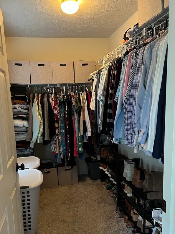 For this closet in particular, we were able to declutter enough to move clothing storage from other rooms and from the floor of the bedroom into this space.